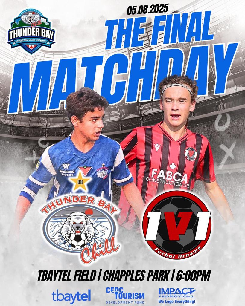 | Monday August 4, 2025 | 6:30pm | Thunder Bay Chill | vs | 1v1 Futbol Dreams SA | CP4 |